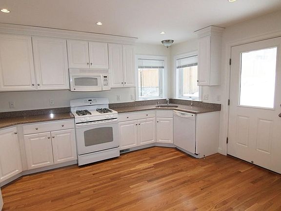 Wonderful ENERGY STAR rated single level apartment with all the amenities. This apartment has 3 bedrooms, 1 bath, a large eat-in kitchen with granite counters, gas stove, microwave, dishwasher, refrigerator, disposal and even a pantry. Central air conditioning, hardwood flooring, gas heat, insulated windows, and a tandem 2 car garage, some basement storage and shared yard space. The 62 bus stop with service to Alewife is a short walk. This apartment has everything and you can walk to several restaurants and stores.