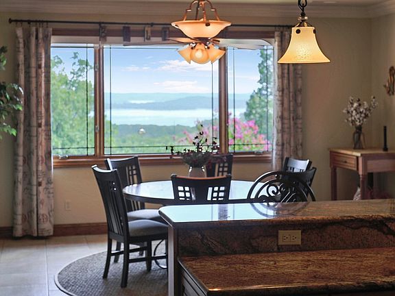 Luxury and tranquility! Top of the line quality is the hallmark of this spectacular Table Rock Lake view home built by the legendary Tom Caruso. The spectacular curb appeal sets the tone for a home with exceptional design and finish throughout. No expense spared in materials... Hand hewn hickory floors, custom mahogany front door, solid white oak interior doors, top of the line appliances, custom cabinetry... The list goes on. Wonderful floorplan with no steps required for daily living. Fabulous outdoor living! Downstairs offers another full kitchen for entertaining or even a second living quarters! All of this is situated on a private 2.8 acre lot nestled in the Ozark Mountains overlooking the country's best lake. Boat slip available just down the road, too!