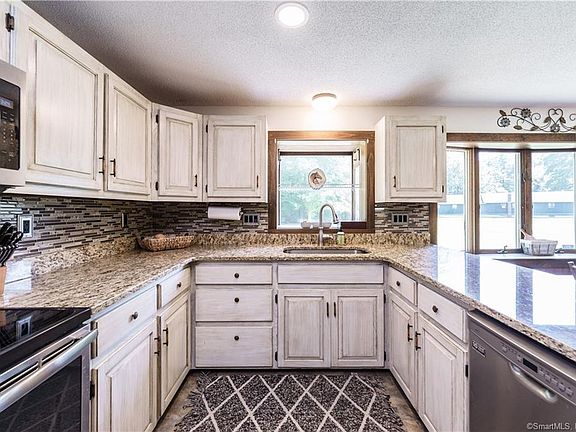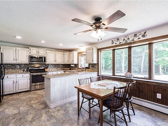 Intentionally Built w/ a Primitive Sturbridge Village Vibe! 8 RM 4 BR Col. w/ 2 Full Baths & Attached 2 Car Gar. w/ Large Attic Above in Desirable Rainbow Reservoir; Great for All Water Sports Enthusiasts. Wonderful Eat-In Kitchen w/ White Washed Cabinets, Granite Countertops & SS Appl. Gaze out your Bow Window from the Eat In Kitchen Area. A Separate Dining Area w/ HW Flooring, Large Living RM, also W/ HW Flooring; & Gorgeous Fireplace w/ Bread Oven, Full Bath, 1st Fl Laundry & a Cozy Den area w/ a Charming Fireplace Complete the Main Level. Second Flr Boasts 4 Large BR's w/ HW Flooring & A Full Bath w/ Ceramic Tile Flrs. Large Finished Storage area Abuts one BR w/ Access to Garage. The 3rd Floor Maximizes your Living Space w/ an add'l 550+ Sq Ft - Homeowner envisioned a Family or Play Rm. Huge Walk Out Basement; w/ newer dual Oil Tanks & Furnace; could be finished for add'l Living Area. BONUS 5 Car Heated & AC Detached Garage for the Ultimate Hobbyist- Great for Boats, Classic Cars, Campers, Home Gym, Workshop or All of your RV Toys; The Large Attic Area Above is Versatile for a Multitude of uses! There is No Lack of Space Here! Head out back to the Large Fire pit, & take a short journey out your back door down to Rainbow Reservoir for Kayaking, Boating, hiking or Fishing. Level 1.66 Acre lot abutting protected forest. Solar Panels are a Power Purchase Agreement, not owned or leased. New Septic System 2021 & Newer Paved Driveway. Minutes to Major Airport & Highways.