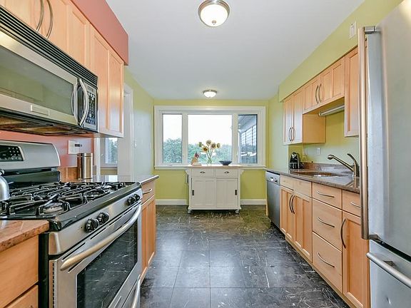 - Kit Dscrp: Countertops - Stone/Granite/Solid, Stainless Steel Appliances, Remodeled, Window(s) - Picture, Flooring - Marble, Gas Stove