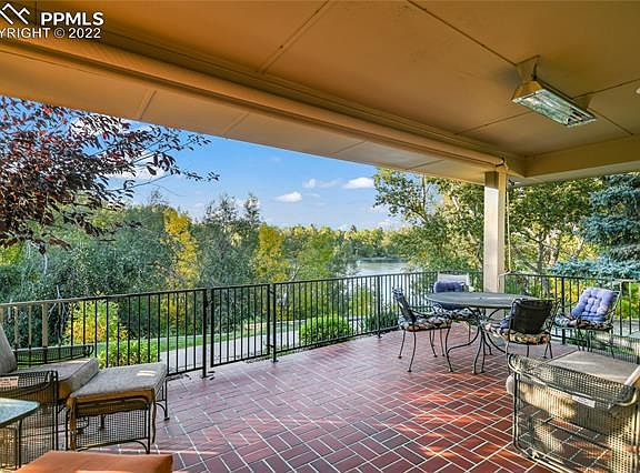 This spacious townhouse is located on the water within the Springlake community. It offers breathtaking views of the mountains and Big Stratton Reservoir. Upon entry you are greeted with warm hardwood floors, vaulted ceilings and a floor to ceiling brick fireplace. The living room includes a wet bar with custom built ins, and an adjoining sitting room that has french doors that open to a private atrium. The large kitchen features custom cabinetry, granite counters, hardwood floors and a breakfast bar. Located just off the kitchen is a walkout to a 22x13 covered patio with rod iron railings, a built-in gas heater and sweeping views of the mountains and Stratton reservoir. The main level master includes a walkout to the atrium, a large walk in closet and a remodeled bathroom with built in cabinets and a glass enclosed shower. The secondary bedroom has great views of the lake, a walk in closet and is conveniently located just steps from the full bathroom. The lower level offers a large family room with a wet bar, a wood burning fireplace and an attached 6x10 office. Additionally there is another bedroom and 3/4 bath that is ideal for guests. The lower level also includes an ample amount of room for storage. This townhouse is located just minutes from the Broadmoor and offers maintenance free living.