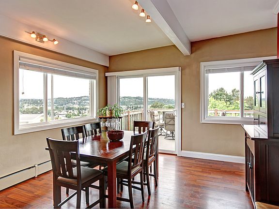 Breathtaking view, incredible remodel-you get it all! Chic open floor plan with all the bells and whistles like granite counters throughout the spacious kitchen with eating bar, stainless steel appliances (that stay!), gas range, built-in microwave, tons of cabinets, large dining & living rooms with views, open beam ceilings, master bedroom with luxurious 5 piece bath & tile floors, big view deck, family room downstairs with wet bar, tons of storage, private backyard, unbeatable location! Wow!