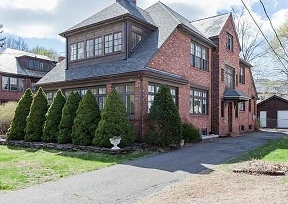 Known as the Joseph H. Ely House, this Craftsman Style home (designed and built by the architect William R. S. Chase) is an inverse twin of 148 Morgan Street. Built for sisters the entries face a shared courtyard. Designed to capitalize on sunlight with numerous windows, three heated sunrooms grace the residence. All with hardwood floors, the first is accessed by French doors from the living room and has direct access to the courtyard. Four bedrooms on the second floor open directly to two more sunrooms. The first floor study also has direct access to the courtyard, ideal for a home based business. Two half baths on the first floor, two full baths on the second and another on the third, the home was designed for comfort on the part of all family and guests. The butlers pantry opens to the kitchen & formal dining room. Recent updates include roof replacement and bricks repointed in 2013. A new Buderus gas boiler in 2010. 2 minutes off Rt 91 and 12 minutes to the Mass Pike.