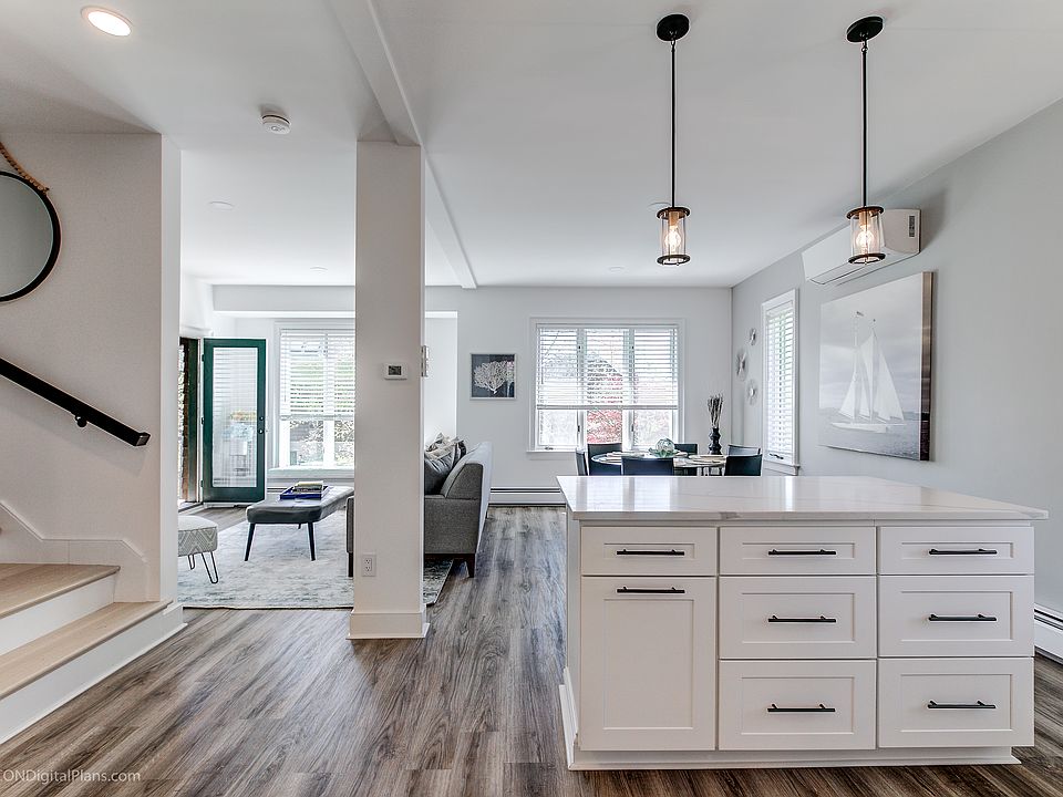 This seasonal rental nestled between the famed Cliff Walk and historic Newport Mansions sits the picturesque Pinard Cottages! Walk to the beach, art galleries, Tennis Hall of Fame, as well as boutique shopping and chic dining from this amazing intown location. The elegant Victorian style cottages are situated on nearly 2 acres of peaceful park like grounds featuring beautiful gardens, mature landscaping and an expansive pergola for outdoor dining or entertaining. The entire unit has been thoughtfully renovated in 2021 to create a seamless open floor plan with high-end design and modern luxuries throughout the home. The first level features a completely updated open concept kitchen, living and dining room with high ceilings and 10 windows filling the space with natural light. Private deck. The kitchen boasts quartz countertops with a large eat-in island, white shaker cabinets with soft close drawers, stainless steel appliances and range hood. Ductless mini split air conditioning, two beautiful new bathrooms with quartz vanities and tile floors, durable vinyl plank flooring. This rental comes fully furnished with 2 queen beds & stocked kitchen. Includes an assigned parking spot with 2 guest spots for the building, private basement storage and shared garage storage for bikes and other items. Rental term can be negotiated. Owners use for part of August but can be flexible. This is also available for Winter months at $3000 per month. Laundry is in unit- water included in fee