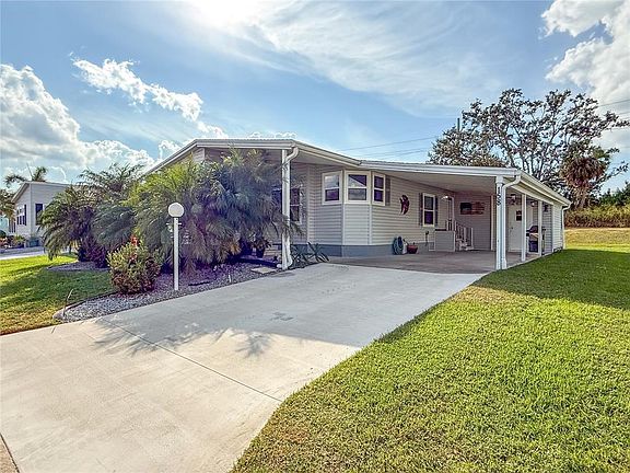 Amazing! Land owned 2bd/2ba beautiful home located in the 55+ community of Ridgewood Oaks. This home has been updated with hurricane windows in all rooms including the lanai. A new roof was installed in 2023 and the AC unit was replaced in 2024. This home features “no carpet”, with laminate flooring in all rooms. Both the primary and guest bathrooms have been remodeled, including walk-in showers and deluxe cabinetry. Looking for an amazing kitchen? You will love this spacious custom designed kitchen which features stainless appliances, large cabinets, spacious countertops and an oversized island workspace. The oversized Lanai has newly installed laminate flooring and large windows to enjoy while you sip your morning coffee and is a great entertainment room for your guests. The workshop outside has been expanded and a concrete pad has been added in the back of the home for grilling, sunbathing or a little golf! Come and enjoy this 55+ community with gated 24-hour security, pool, clubhouse, tennis courts, pickleball courts, outdoor gym, great fishing and lots of activities. Internet and cable, lawn maintenance are all included in the low monthly fees. Ridgewood is close to all shopping, Ellenton Outlet mall, restaurants, I-75 and the Florida Gulf beaches. Don’t let this one get away!