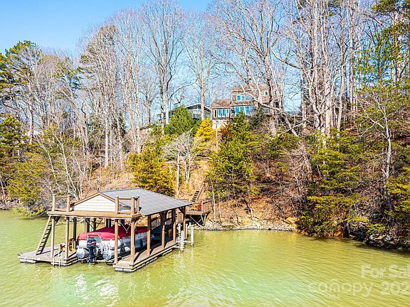 LAKE HICKORY main channel waterfront home offers water views from almost every room in the house! Mature landscaping ensures privacy from neighbors. Approx 170+ ft lake frontage, deep water off the dock, natural stone shoreline. Enjoy outdoor living on the 2 screen porches, deck, firepit area, & covered dock w/deck area. This stylish contemporary home is multi-level w/bedrooms on each level. Main level LR w/vaulted ceiling & stone fireplace is open to the DR. The kitchen offers another dining area, plus a seating area with million-dollar lake views. 2BR/1BA on main level. Primary BR suite on 2nd level w/2 WICs, private BA w/large walk-in shower & jetted tub. A loft overlooking the LR is the perfect reading spot/office area. Basement level offers a den w/built-ins & wet bar, 4th BR, laundry room & workshop. Detached double garage. Updates include: new walnut flooring 2015, new guest BA shower 2017, new concrete driveway 2019, new roof & exterior paint 2020. Septic tank replaced in 2011.