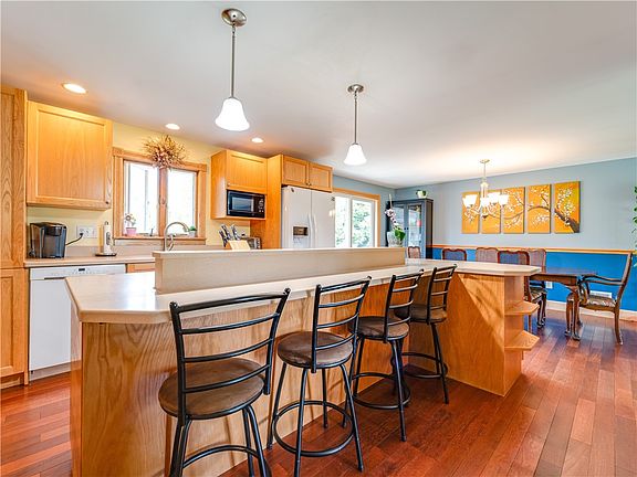 Enter through the covered front porch to the convenient foyer that leads to the family room with a bay window and gleaming wood floors. The kitchen has a large island with a breakfast bar and seating for 4, an elegant dining room with chair rail and slider to back deck. There is a spacious living room with plush carpeting and cozy gas fireplace, and a bright office with oversized window. There is also a wonderful in-law or teen-suite with separate entrance that includes a bedroom, full bath and sitting area. There are 3 generous-sized bedrooms upstairs, and a finished basement including a large bedroom with carpeting, a full bath and a rec room. Outdoors, take advantage of the huge 2-tiered deck, a large patio, abundant backyard, a fully fenced in area with a playground, and a convenient 2-car attached garage. There is so much living space in this one-of-a-kind home! Delayed negotiations until Tuesday 6/27 noon.
