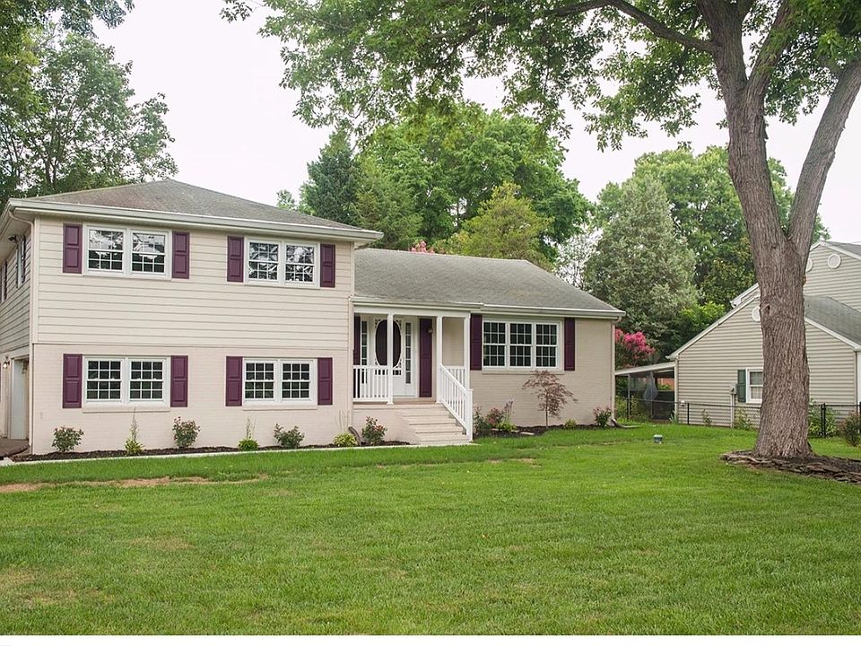 R-10070 Attractive multi-level split home on a spacious corner lot with aged trees and new landscaping. With energy-efficient windows throughout the house, the updated kitchen features abundant natural lighting from skylights as well. The island overhang has room for two, and there is a large eat-in area that is great for hosting friends. A gorgeous sunroom overlooks the beautiful oval in-ground swimming pool. The Great Room boasts lovely wainscoting, recessed lighting, and a bay window with a view of the backyard. Original hardwood floors in pristine condition throughout the upper level. Revitalized Bathrooms, one with custom sink vanity and glossy subway tile that complements the restored cast-iron tub for a charming blend of classic and modern. Schedule your tour before this gem is gone!
