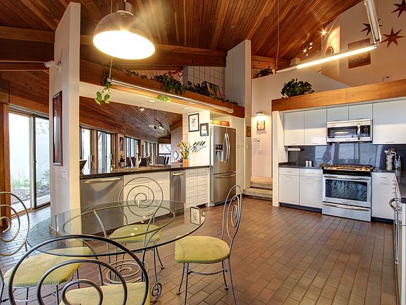 An architect's own passive solar contemporary home on a prime and very private 5.4 acre view site on Lookout Mountain adjoining 400 acres of Jefferson County Open Space! Mid century modern flair, timeless finishes, exciting spaces! The custom home is designed for maximum energy efficiency. The great room is spectacular with a vaulted redwood ceiling, a two story fireplace trome wall holding heat, an open design with dining area, an expansive wall of glass! The 19 x 15 kitchen features granite tile countertops, sleek cabinetry, specialty lighting and a private covered patio and garden. The master suite upstairs frames the spectacular hills and sunrise beyond. A wonderful bath and dressing area. 2nd bedroom suite/private study with 3/4 bath also on the master br level. Two additional bedrooms are located off the great room with a bath and sparkling glass block shower. Amazing site and exquisite design.