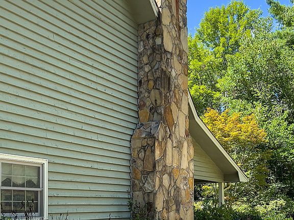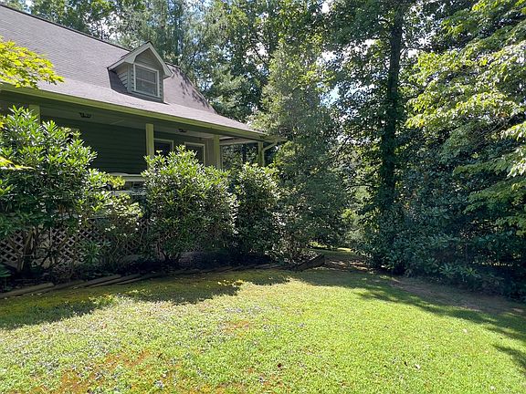 This is a charming property with 4.6 acres and a private pond with a covered dock and Town Creek bordering on one side. Built in 1988, the workmanship is outstanding in this home. Originally, it had 3 bedrooms and 2 baths. Later, the owners added a large studio apartment and bathroom just behind a charming breezeway that adjoins a small private deck.(making it a 4/ 3, however-septic issued for 3/2) The front porch is like an old fashioned veranda, furnished with wicker furnishings and a lovely place for plants and a relaxing glass of refreshment. The original house has a large master on the main w/private bath and the upstairs has a split bedroom plan with bath in between. A full basement with high ceilings could be additional storage, or finished off as a bonus area (and an outdoor exit and windows). The huge two car garage was added later when the studio apartment was built. As with any home of this era, some updating and new flooring would make this an amazing home for the right buyer. This much land with a private pond so close to town is a rare find.All 3 bedrooms are  very Roomy and upstairs closets are huge.There is a Potential for walk in closet in Master if utility room wall were removed and W/D relocated.