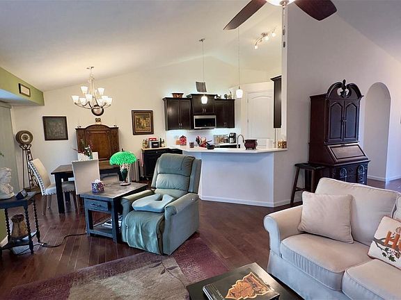 - Cathedral Ceiling(s), Vaulted Ceiling(s), Walk-In Closet(s), Breakfast Bar, Custom Cabinetry, Solid Surface Countertop(s), Tub, Dining/Living Room Combo, Kitchen/Dining Room Combo