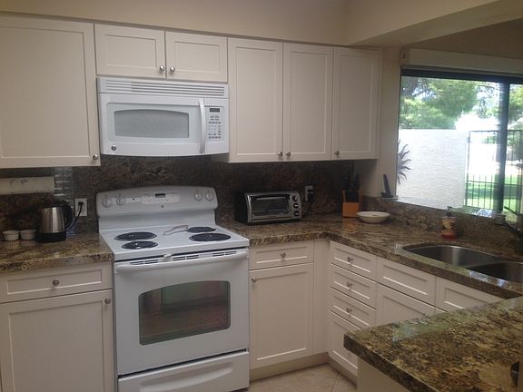 Beautiful two bedrooms, two bath condo available for short term rental in Mission Hills Country Club. Renovated unit on the Palmer golf course steps to the community pool. Modern kitchen with granite counter top and newer appliances plus an en-suite laundry. Walk out from dining room to an enclosed patio area with BBQ and walkout from living room to patio and lots of green space.