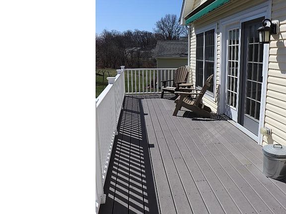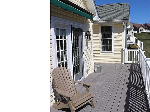 If you are searching for a home in a 55+ community, you have found the best of the best. The highly sought after Ovations at Elkview is Gold Star rated, has a beautiful country setting and many amenities like a fitness center, pool, tennis courts and a clubhouse with billiards. This home started out as a loaded Aria model with 3 bedrooms, 4 full baths and a finished basement but has undergone recent upgrades making it even better. How about a whole house generator, a remote-control awning over the back deck that overlooks trees and farmland, a home theater system in the finished basement, a wall of shelves in the great room, granite counter tops in the kitchen and master bath and more. When you enter the front door into the foyer, hardwood floors stretch past a formal living room toward the kitchen and dining room and all the way to the great room with a cathedral ceiling and a gas fireplace. French doors lead to the back deck overlooking farmland for all the peace and serenity you could ask for. The first floor master suite has a sitting area, walk in closet, and large tile bath with a soaking tub and walk in shower stall. A second bedroom and full bath are also on the first floor along with the laundry that leads to the 2 car garage with an optional 8' high door. Upstairs you will find a huge loft that overlooks the great room, a third bedroom and full bath as well as a storage room. The huge finished basement is ready for fun and entertainment. With a built-in theater system, a dart board wall, a full bathroom, and plenty of extra space, it is ready to become whatever you choose!