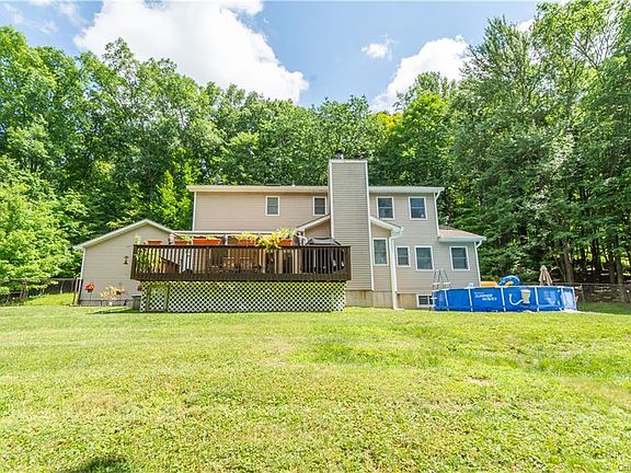 Beautiful home! Privacy abounds on this 5.2 acre Paradise!! Imagine your own land where you ride your ATVs and dirt bikes or walk the hiking rails surrounded by mother's natures beauty!! This beautiful colonial has space for everyone. A welcoming foyer leads to a formal living room, formal dining room, family room with fireplace, eat-in spacious kitchen, half bath with space for a shower/tub and additional room for an office, guest room or playroom. The second floor features a large Master Bedroom with Ensuite Master Bathroom and walk-in closet, 2 additional bedrooms and an office/den making a possible 4th bedroom, full hall bathroom. Step down into the lower level to partial finished basement with 3 extra large finished rooms and expansive unfinished storage space. Newly installed above-ground pool steps away from an oversized deck complete with retractable awning makes your summer days and nights fun and relaxing. Close to major highways making your 60 mile drive to NYC a breeze.