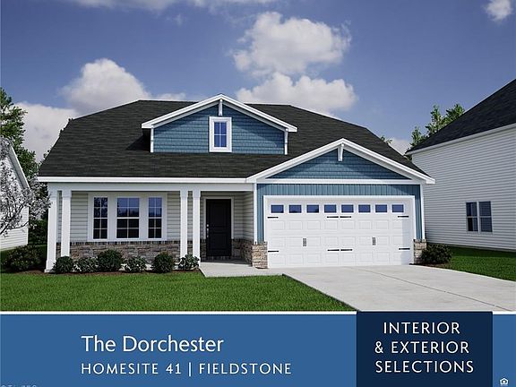 The popular single-story Dorchester features four bedrooms and two bathrooms. The kitchen, located at the back of the home, opens to an eat-in area and a cozy living room. Luxury vinyl plank flooring runs throughout the main living areas and the hall, adding style and durability. On one side of the hall, you'll find two spare bedrooms, a shared full bathroom, and a laundry room. On the opposite side, the primary bedroom includes a walk-in closet and an en-suite bathroom with a five-foot walk-in shower, dual vanity, and linen closet. The fourth bedroom is also located on this side of the hallway, making it a perfect option for a home office, nursery, or guest room. The fully-sodded yard comes with an irrigation system for easy maintenance.