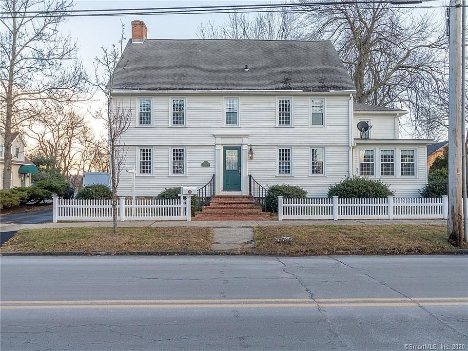 Walk to the center of town from this special antique circa 1750, (remodel 1992) colonial home, lovingly cared for with pride of ownership. Situated on .42ac in a park-like setting with patios, pergola & pathways. This warm inviting home offers almost 3000sf with generous room sizes, bright & cheery spaces. The front entry centerhall area welcomes you into spacious living room with fireplace, dining room with picture window to the left and large family room to the right all with hardwood floors. The flex floorplan at one point was set up as a 2 family home with small kitchen area still in place on right side of house. The kitchen addition added a bright cathedral ceiling area for entertaining and wonderful breakfast area to take in the private yard. There are several added rooms as sunrooms, office/den locations. Upstairs there are 3-4 bedrooms, laundry closet and 2nd staircase for easy living. All conveniences are here for modern lliving, detached 2 car garage with access from next door office park plus large shed. Enjoy this gracious home as is, or plan to remodel for a trendy update. Conveniently located to New Haven, Hartford, local train station, fabulous restaurants & shopping just steps away.