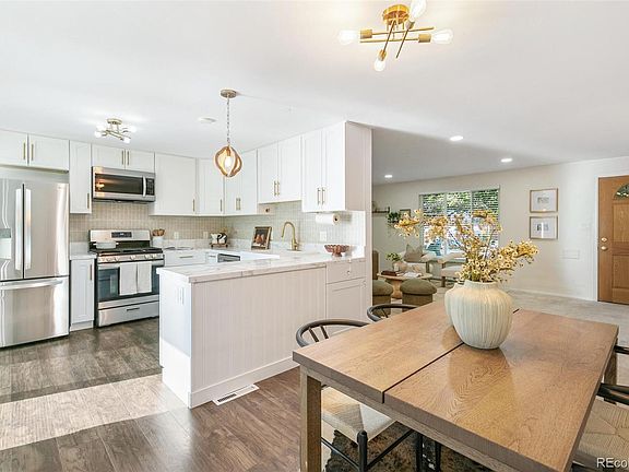 Updated Lakewood ranch near Belmar with a newly finished basement and a walkable Lou Mar Heights location. Inside, the completely remodeled kitchen (2023) shines with quartz counters, custom cabinetry, all-new appliances, new flooring, and a reverse osmosis filter—an everyday upgrade you’ll feel from the first meal. The main level features three bedrooms including a primary suite with an updated 3/4 bath, plus a spacious, vintage-chic full hall bath; living room + hallway carpet were replaced in 2024. Downstairs, discover approximately 1,200 sq ft of recently finished space with two non-conforming bedrooms and rough-in plumbing for a future bath—perfect for guests, a home office, gym, or media lounge. Comfort and efficiency come easy with double-pane windows (main level and new sliding door replaced), room A/C units (2020), smart thermostat, radon mitigation, new hot water heater (2020), new water lines (’22/’23), and majority new light fixtures/outlets (2023). Outside, enjoy a fully fenced, level 0.18-acre lot with sprinklers front and back, private yard, garden, fire pit, and rain gutters—plus an oversized 1-car garage with storage. Solar is owned with a loan. Location perks: Walkable setting with a Walk Score of 80, bus stops ~3 blocks away, and light rail about 2 miles—making commutes and nights out easy. Moments to Belmar shopping/dining, parks, and everyday conveniences. No HOA.
