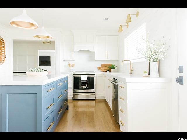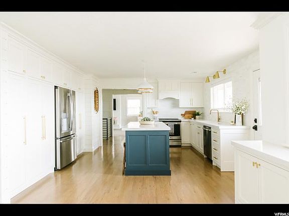 Rare east Farmington updated home with BEAUTIFUL views of the valley to the west and mountains directly to the east, and over a half acre yard. You will not want to miss this one! If the views from the outside aren't enough, the recently updated inside will leave you speechless. Brand new custom kitchen--marbled quartz countertops with 2" mitered edges, inset cabinetry, floor to ceiling pantry wall with pull out drawers, brand new stainless steel appliances, including induction stove top and convection oven, custom hood, oversized island with seating for 4, counter to ceiling marble subway tile backsplash, shiplap accents, built in serving buffet for extra storage and countertop, and wall of windows for natural light. Kitchen access to one of two Trex decks with gorgeous views of the valley, new carpet in living room and all bedrooms, gas fireplace, french doors to front room with custom millwork, newly refinished red oak flooring, newly remodeled main floor and second floor bathrooms, custom built in closet in master bedroom, private, direct access to second level deck from master bedroom, new blinds throughout the house, most new doors throughout, mature fruit and nut trees, secluded yard, two a/c and two furnaces (both furnaces are 90%), fresh paint, new trim throughout the house, huge two-story bonus room downstairs that is perfect for the kids, and the list goes on and on. Hard to beat this location-- close to the freeway entrances, Station Park shopping mall, etc. Square footage figures are provided as a courtesy estimate only and were obtained from previous listing. Buyer is advised to obtain an independent measurement.