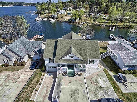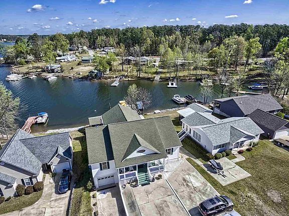 Home designed for lake living. Big water view from wall of windows. Year-round water. Home has so much to offer: 5 bedrooms, 3 full baths, 2 kitchens (one on main and one lower), office, Florida room, 2 great rooms (one on main and one lower), 2 laundry rooms (one on main and one lower), and exercise room. Porches across front and rear of home, gazebo, and dock. Open floor plan and immaculate condition. Heated garage and workshop. One owner home.