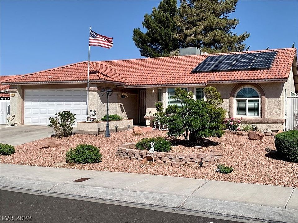 Swim into Summer with this fabulous Pool Home! Single Story, 3 beds, 2 baths, located on a Cul-De-Sac. FULLY OWNED SOLAR PANELS. NO HOA either! Celebrate under the Covered Patio with Built in Barbeque and Outdoor Counter/Sink while enjoying the Heated Pool or Spa. Large Formal Living Room/Dining Room Combo, and separate Family room with beautiful Fireplace and French Doors. Kitchen features a Breakfast Bar, Roll Out Shelves, Eat-in area and Garden Window. Primary Bedroom/Primary bath with Dual Sinks. Guest Bathroom has convenient door to backyard. Ceiling Fans throughout. Easy Maintenance Front Yard. Insulated Dual Pane windows. Small RV Parking. Garage has storage, access door to yard and insulated garage door. Two nice Storage Sheds included. Newer Water Heater. BUYER MUST VIEW BEFORE OFFER.