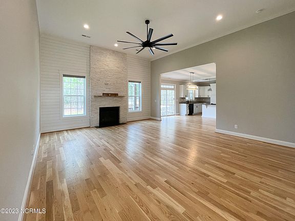 Welcome home to 158 Scrub Oaks Dr in the heart of Hampstead's peaceful Pinnacle Ridge community. This updated 3BD + BONUS ROOM home sits on 1.48 acres that spans peaceful lush green vegetation and a garden ready to harvest! Upon entry, you'll be greeted with beautiful high ceilings that allow for an abundance of natural light to flow throughout. The living room boasts a white shiplap accent wall and stone fireplace that adds an elegant modern touch to the living space. Fall in love with the bright white kitchen that overlooks your back yard and the open concept is perfect for entertaining guests. Bring your toys because you'll have plenty of room for them in your new oversized 3 car garage AND shed! The custom wooden shelving in the garage conveys with the home. Spend your evenings relaxing on your new back deck listening to the sweet sound of the birds nearby. Located just minutes from award winning topsail beach and just a short drive to both downtown Wilmington and Jacksonville. Schedule your showing TODAY!