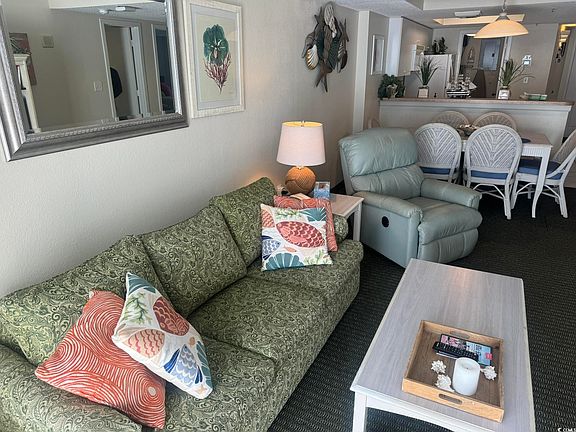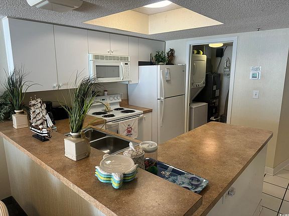Welcome to this charming two-bedroom, oceanfront condo offering breathtaking views of the Atlantic Ocean! The fully equipped kitchen features range, built-in microwave, dishwasher, refrigerator, and ample cabinet and counter space, perfect for preparing meals and entertaining guests. The spacious master bedroom boasts a double bi-fold door closet, a sliding glass door leading to a private balcony with unforgettable views, and direct access to the master bath. The master bath includes a single sink vanity, comfort station, and a classic tub/shower combo. This serene condo also includes a generously sized second bedroom, a full guest bathroom, a laundry closet with a stackable washer and dryer, and extra closet space throughout. The Sea Watch Resort provides a wealth of world-class amenities, including six oceanfront pools, two lazy rivers, ten hot tubs, the popular Captain's Cove Restaurant, an oceanfront tiki bar, a fire pit, the Loggerhead Beach Playground, a game room, and a fitness center. With easy beach access and convenient proximity to Myrtle Beach’s top attractions—golfing, delicious eateries, award-winning off-Broadway shows, public fishing piers, and unique shopping along the Grand Strand—this condo offers everything you need for a memorable getaway. Plus, it's conveniently located near everyday essentials.