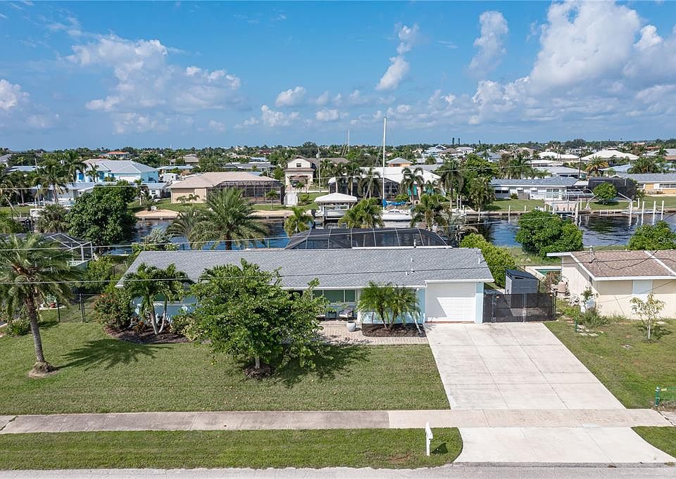 WATERFRONT HOME IN PORT CHARLOTTE W/NEARLY INSTANT SAILBOAT ACCESS TO CHARLOTTE HARBOR & WESTERN REAR EXPOSURE - This updated, 3 bed/2 bath, waterfront, pool home off Edgewater Dr in Port Charlotte has everything you need to start living your Florida dream life: open layout, screened lanai w/in-ground pool + extended seawall w/dock. Spectacular sunsets await behind the home as well thanks to the western rear exposure. It's the perfect spot for an avid boater or fisherman. Property is just 11 LOTS from the harbor & offers 100 ft of private seawall w/an oversized, composite dock. You could swim to open water, if you wanted. Inside, the home is flooded w/natural light thanks to large picture windows & three sets of sliding glass doors that open to the lanai. Renovations created a home w/a distinctly coastal vibe w/a neutral color palette enhanced by the water views from almost every room. Interior updates include wood-look plank tile flooring throughout, plantation shutter window treatments, updated kitchen & baths plus impact-resistant windows & sliding glass doors. Floor plan features a living room, dining area & family room w/central kitchen connecting it all. The modern kitchen includes soft-close contemporary cabinetry, granite countertops, stainless steel appliances, and a tumble stone backsplash. The family room features a tongue and groove ceiling that enhances the coastal feel. The master suite has a large closet w/extra storage space above it & an en-suite bath w/tiled shower. Two guest bedrooms give you plenty of space to host out-of-town guests. The outdoor living space really shines here w/all NEW POOL & SCREENED LANAI (2021). The lanai has beautiful shellstone pavers surrounding an in-ground, heated pool. Lanai boasts a covered seating area as well as a large sun deck that is perfect for soaking up some Florida sun. Relax poolside & catch the occasional glimpse of a dolphin, manatee or pelican in the canal behind the home. Well-maintained tropical landscaping enhances the feel of a private oasis in your backyard. Follow the shellstone paver path to the oversized, composite dock. Water & electric hook-ups are available dockside. Keep your boat docked in your backyard where you can set off on your latest adventure - be it a day spent out fishing, sailing to lunch at any number of local, waterfront restaurants or taking that trip to the Keys. Other amenities include an attached one-car garage, brick paver driveway, large, fenced backyard & new roof (2021). Although the home is connected to county water & sewer, there is a deep, private well available for irrigation & filling the pool. Enjoy a great location - close to shopping, medical centers & area dining including being just minutes from the new Sunseeker Resort. Located across the street from Severin Park - a permanent greenspace in the neighborhood. Find your spot in paradise by making an appointment today.