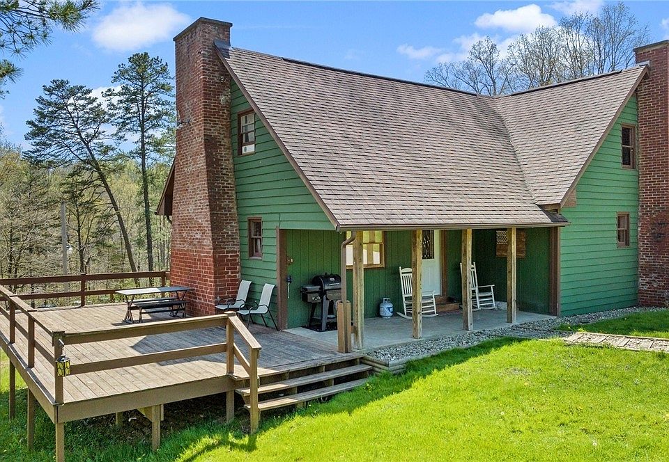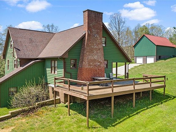 Nestled in nature on 7.6 acres of peaceful privacy. This 4 bedroom, 2 bath home is endowed with country charm. The modern rustic kitchen features quartz and butcher block countertops, a split door pantry, large farmhouse sink, and stainless appliances. Cozying up by the fireplace will be a difficult decision as this property features 3 for your enjoyment. Convenience meets function with a first floor master bedroom and fully renovated bath that shares space with an open concept living and dining area. Customized details throughout including interior wooden shutters, distinctive lighting, railroad tie walkway, accent walls, and unique vanities. Lower level amenities include a spacious family room and the perfect bar for entertaining or game day. The exterior deck and patio is a quiet place to relax and refresh. You will enjoy the serenade of a songbird and the sights of all of the wildlife that pay visit to the property. This stunning property offers a detached garage, fruit trees, a pa