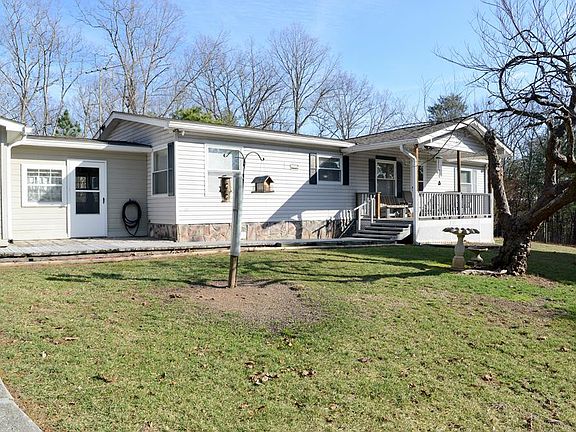 Wonderfully maintained and semi updated manufactured home on 4.8 private acres. This home features 3 bedrooms, 2 full baths, large great room & dining room combo, good prep space in kitchen, laundry off kitchen, mudroom connects kitchen to 2 car garage. Enjoy the large covered front porch and rear patio. Lovely landcaped yard, 3 out buildings - one is the size of a single car garage - would make great man cave or she shed, plus 2 other storage sheds. (Barn shed at end of driveway does not stay).