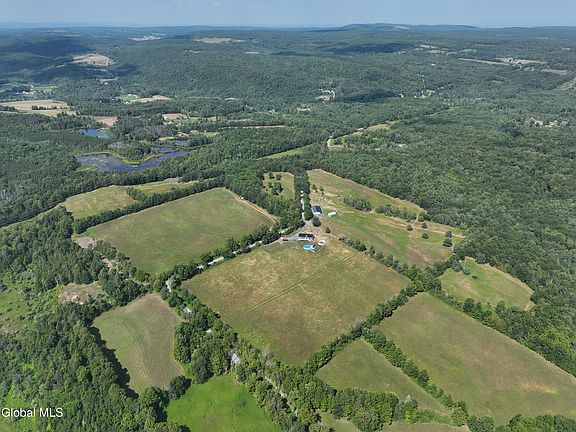 Experience serene country living in this custom 6 year old ranch situated on 79 glorious acres! This unique property blends rustic charm w/modern finishes & smart sustainable living. The open floor plan features a beautiful granite & stainless steel kitchen that flows into the living rm w/wood stove. Plus, there is a 1st Fl laundry/mudroom, spacious bonus room/den & Primary Suite w/full bath. The basement provides space for future finishing or storage. Enjoy breathtaking views from the gorgeous Trex deck or front porch. Outdoor amenities include a 16 stall horse barn, chicken coop, heated pool, storage shed/pool house, sugar shack & 2 car attached garage. With open meadows, incredible views & solar power, the possibilities are endless! Experience the peace of a true country retreat!