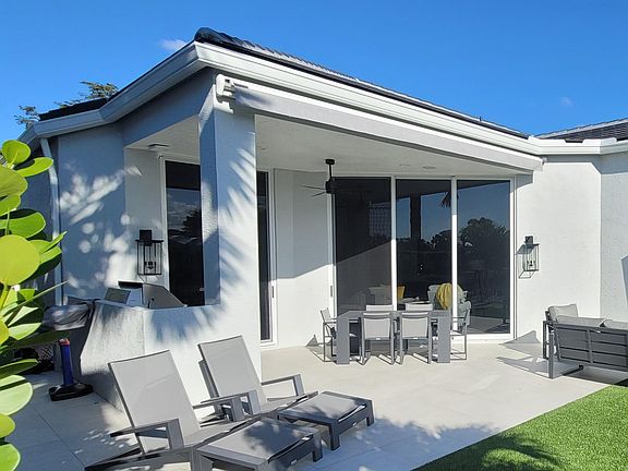 - Exterior features: Auto Sprinkler, Awning(s), Built-in Barbecue, Custom Lighting, Outdoor Kitchen, Zoned Sprinkler