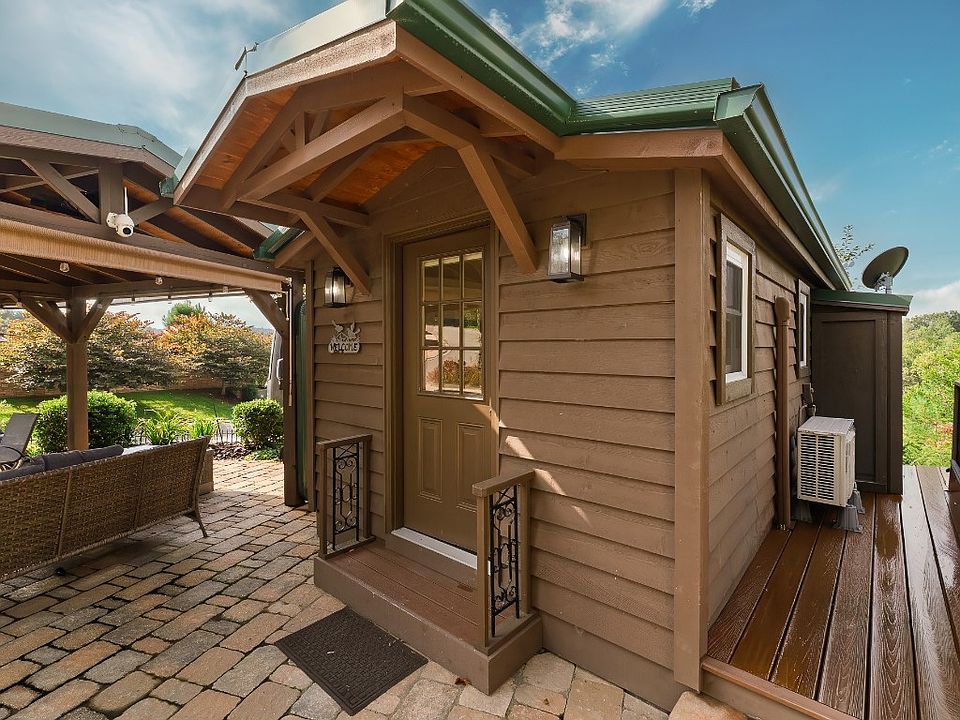 Beautiful mountain viewsSoothing waterfallOutdoor poolFull kitchenRv padLarge stone patioSmall gym