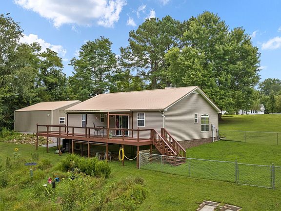 Enjoy peaceful country-living in this charming 3 bed, 2 bath home nestled on almost 4 acres with a creek and cleared walking trails. This property has a spacious 1,484 square feet of living space with a freshly painted large, covered 48'x10' back deck with ramp overlooking a peaceful flower garden and tranquil wooded area. Store your car and toys in the 30'x30' shop building with lots of custom built storage. Also included in the garden area are various fruit trees, blackberry bushes, and even an asparagus patch all next to the custom built garden storage shed. This house comes with surge protection, also all appliances are included with property!