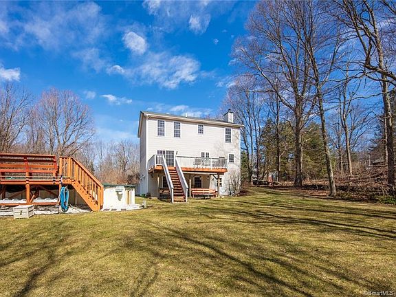 Great value!! Spacious and bright 4 bedroom 2.5 bath impressive Colonial in private country setting with above ground pool. This home is situated at the end of a lovely level stone driveway with a rare sprawling back yard. Beautiful entrance foyer with wood spindle staircase, coat closet and neutral flooring. Large open eat in kitchen featuring an abundance of oak cabinets, counter space, gleaming hardwood styled flooring and casual dining area with walk out to huge pressure treated deck overlooking pool. Open floor plan in main level living room hosts bright sun drenched windows, ceiling fan and wood styled laminate flooring. Perfect home to entertain family and friends with easy floor plan. Upper level boasts a master bedroom complete with dual closets and master bath with stall shower. Three additional bedrooms with wall to wall carpeting, ample closets and ceiling fans. Great walk-out unfinished storage space in the lower level, additional area has possibility to be finished, complete with 2 car garage, efficient oil heat, central air conditioning and walkout to under deck patio. Wonderful location, private but yet close to town for shopping, restaurants and schools. Neat and pristine condition, ready to move in, perfect for pool time!