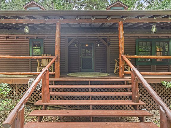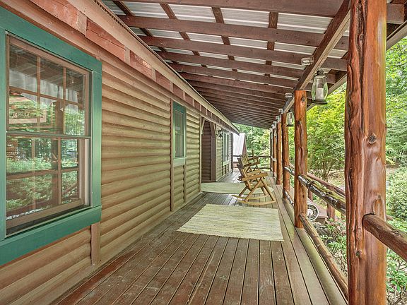 Love mountain living, look no further. This meticulously maintained beautiful log cabin on 5 ¼ acres is nestled in the heart of Suwanee. Rock on the huge covered front porch or enjoy the woodland scenery with an amazing creek on the privacy of the spacious deck. New windows, doors, fresh stain, new roof, AC, heat pump and kitchen appliances, 16' vaulted ceiling . You will never know city living is so close. This home offers a 3br/3bath, in-law- or teen suites, also possibility of 4th bdr /office/loft. This property boasts 2 garages , 32'x36 'and 24'x26 ' with the ability to park 5 cars, plus a separate workshop. 2 paved driveways with ½ circle in front. This mountain getaway can be yours to come home to every single day. Imagine Christmas in the Smoky mountains without the drive.