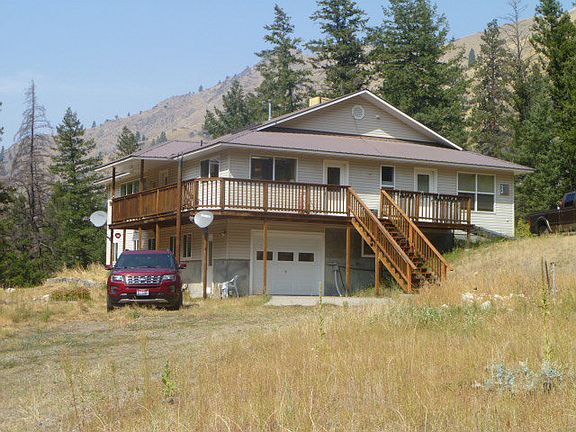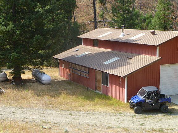 PRIVACY: Beautiful custom built home on 16.7 acres. Bordered on 3 sides by National Forest. Trail Creek runs through the property. Property is off grid with solar panels and 12 solar batteries making a 24 volt system. Batteries are 2 yrs old. 9.5 diesel generator for back up power. One floor living with full basement. Open floor plan with large kitchen, 3 bedrooms, and 1 bath. Extended island in kitchen. Large master suite with walk in closet. Kitchen has 2 side x side propane refrigerators, propane range,and solid surface counter tops (Also In both baths). Living room has built in book shelves and hardwood floor. 2 propane heating stoves on main floor. 2 1,000 gallon propane tanks owned by the owner. Full daylight basement has full bath, mudroom, propane heat stove, 1 car garage and separate room with central propane furnace, water heater, and pressure tank. Electric washer and gas dryer in basement. 40x60 shop with cement floor. Enclosed generator room, wood stove and half loft area. Property has 6 fruit trees: apple, plums, peach, cherry and walnut. The property is home to an abundance of animals including deer, elk, moose, and a variety of species of birds including grouse. What a great home in the woods or a hunting lodge.