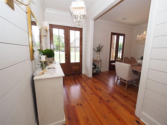 Welcome to this gorgeous 5 bedroom, 3 1/2 bath home. As you walk into the foyer of this home, you will see gorgeous white shiplap. The dining room is very spacious and it opens up to the amazing kitchen. This kitchen is a dream with top of the line appliances, quartz countertops, Thermador gas oven, stand alone ice maker with nugget ice, huge refrigerator and separate freezer. The master suite and guest bedroom are downstairs. The master suite is huge. The master bathroom features marble tile floors, stand alone tub, marble tile shower, and large closet. Upstairs you will find 3 large bedrooms, two bathrooms and an office/art room. This house is located on 2 acres with a beautiful pond behind the house. If you want luxury living, look no further. You do not want to miss this house!!!