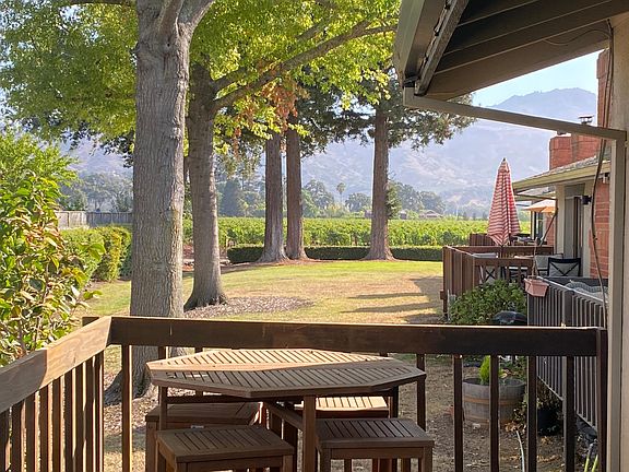 Located in the quaint town of Yountville, just blocks from world famous restaurants and wine tasting rooms, this beautifully remodeled and fully furnished 2/2 condo awaits. Featuring new hardwood floors throughout, as well as new cabinets, appliances, countertops, floating shelves, backsplash, plumbing and lighting in the kitchen. Other upgrades include fresh paint throughout, new baseboards, custom California Closet Systems, Nest thermostat, Epoxy coated garage floor, and a new paver front patio. Relax on the back deck with a glass of wine while enjoying views of the vineyards and Stags Leap mountain range.