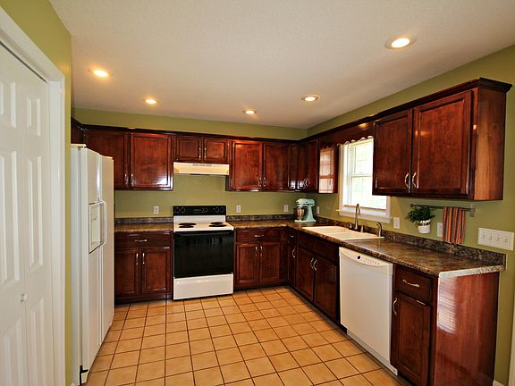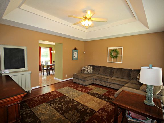 Immaculate one level 3 bedroom 2 bath home. Walking into living room with pergo flooring, free standing fireplace, and try ceilings. Kitchen has tile flooring, spacious eat in area, pantry, and comes with all appliances. Master bedroom has new flooring, trey ceilings, and nice size closet. Large walk in utility room and one car attached garage. Open deck over looks the level back yard, and outbuilding stays with the home for added storage. Located in a 100 percent financing area for those who qualify.