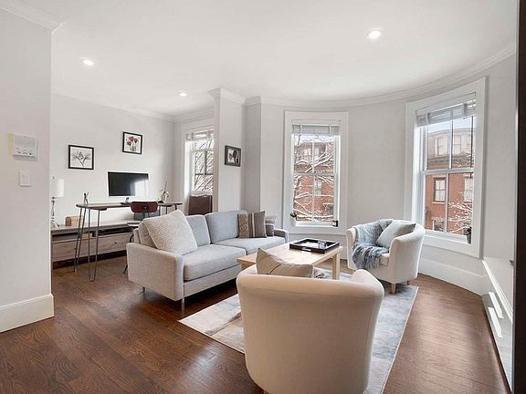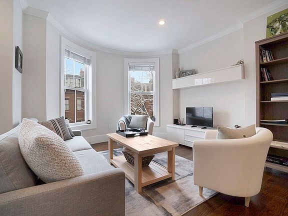 No detail overlooked in this meticulously renovated 1 bedroom/1 bathroom unit. Located in a bow front brownstone building on highly sought-after W Newton Street, this unit is adorned with bow windows in the living and bedroom that drench the space in natural light. An open floor plan features a spacious living area with a cozy office/reading nook. A gleaming white kitchen features quartz waterfall countertops, glass backsplash, designer appliances, and a breakfast bar. Generously sized ensuite bedroom features a custom closet and beautifully renovated bathroom with white tile surround shower with glass enclosure. Handsome hardwood floors throughout and washer/dryer in-unit. Sorry no pets or undergrads.