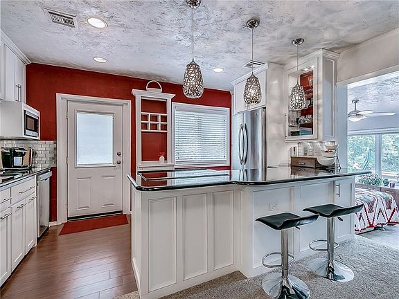 Darling lakefront cottage at beautiful Lake Hiwassee with a dock! This home has been meticulously maintained and updated throughout the 30 years the current owner has lived here. Well designed kitchen for maximum storage and functionality includes stainless steel appliances, granite countertops and breakfast bar. Very open concept allows you to enjoy gorgeous views of the wooded lot, greenbelt, and lake. The large walk-in closet was previously a bedroom and could easily be converted back. Lake Hiwassee provides endless entertainment outdoors! Enjoy boating, water skiing, wake boarding, paddle boarding, swimming, kayaking, fishing, and duck/geese hunting! This home is walking distance to the community pavilion area and playground. This is OKC's hidden gem! You are only 10 minutes Edmond and 25 minutes to downtown OKC! Live the lake way without the drive!