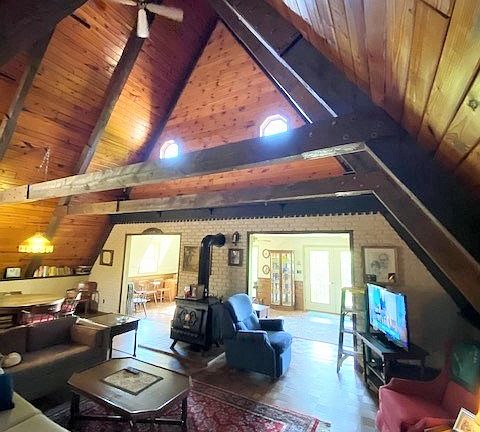 Neat as "A" pin home and property! Take a look at this custom built and beautifully maintained A-frame home situated on 11 scenic acres conveniently located between Mansfield and Troy. The pride in home ownership can be seen throughout the home featuring a first level bedroom and bathroom, a great amount of storage room, oversized living/dining room and stunning views from the large sun room. The large heated basement garage and workshop provide additional living space and extra room for any hobbyist! This great combination of home and property must be seen, 100% of Oil, Gas, and Mineral rights convey to buyer.