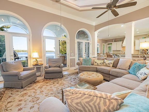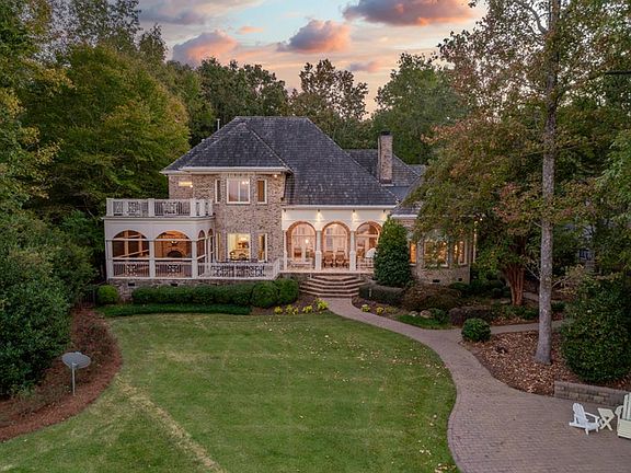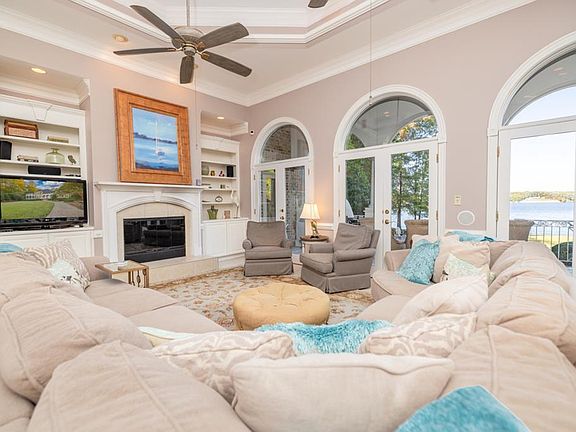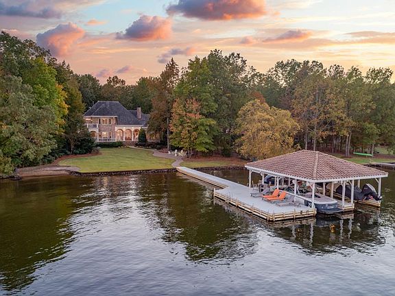 This FURNISHED, French-style lake home affords breathtaking MAIN LAKE VIEWS & FLAT LOT! Extraordinary features such as the tumbled brick exterior & wooden shake roof, makes this beauty anything but ordinary! Main level boasts an open floor plan w/ a gourmet kitchen, breakfast area, living room w/ built in bookcases, separate dining room, master bedroom & bath, office w/ murphy bed for extra sleeping, laundry room, wine room & full bath leading to screened porch w/ fireplace. Nice Pizza Oven conveys as well. Upper level offers 2 BRs, 2 baths & expansive room over the garage with 3 queen beds. Nice balcony deck is located off one of the bedrooms. As you meander the walkway to the lake, notice the sandy beach to the right. Also included is the 2007 Mastercraft X45 boat! Please note:CHANGES TO LANDSCAPING WERE MADE SINCE PICS WERE MADE TO CONFORM WITH DOMINION GUIDELINES.