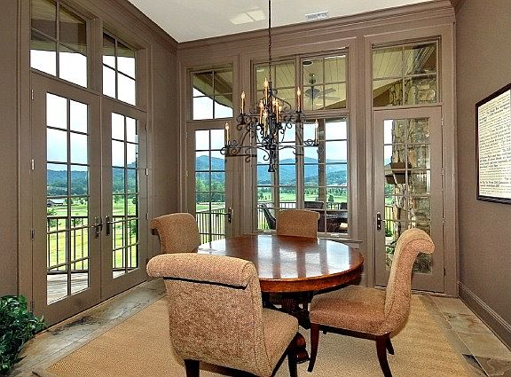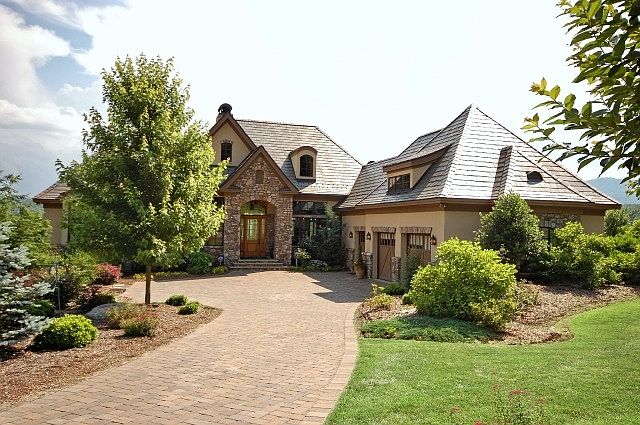 When you step through the threshold of this beautiful freshly remodeled home, the mountains will surround you in colorful splendor. The open floorplan affords you a multitude of cozy spaces for family and friends. Entertaining large parties in this generously sized home will be fun and exciting. A great location on the 7th hole of Jack Nicklaus signature golf course - close to the club village, wellness center, and minutes to the Blue Ridge Parkway and surrounding mountains. You've finally found home!5,480 square feet, with a two-story Great Room, kitchen with island and bar, eat in breakfast area, dining room, covered outdoor sitting area with a woodburning fireplace. library/office, four en suite bedrooms with primary bedroom on main level, laundry room, exercise room, den and bar area - and a bonus room above the three-car garage. This home has incredible street appeal with mature landscaping and flowering shrubs and flowers