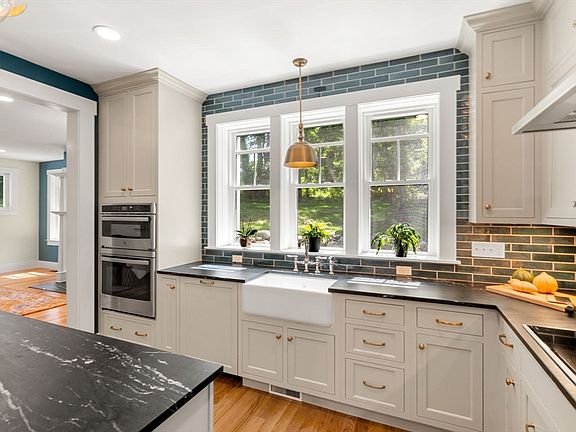 Introducing a stunning custom colonial boasting 9ft ceilings and premium craftsmanship. Enjoy the blend of hardwood and custom tile flooring, throughout the open-concept first floor. The heart of the home is the custom kitchen with soapstone island, walk in pantry, Wolf cooktop, and top-of-the-line inset cabinetry, open to the dining and family room with gas FP. French doors off the spacious foyer lead to a versatile living room or home office, while a convenient 1st -floor BR and stunning bath offer added flexibility. Upstairs has 3BR’s, including a primary with a WIC and spa-style bath with rain shower and double vanity, a 3rd full bath and designated laundry room with utility sink. The lower level offers additional finished bonus room and great storage space. Outside, the manicured grounds, extensive hardscaping, and farmer's porch, embody the perfect blend of elegance and sustainability with owned solar panels ensuring energy efficiency. This home truly has it all!