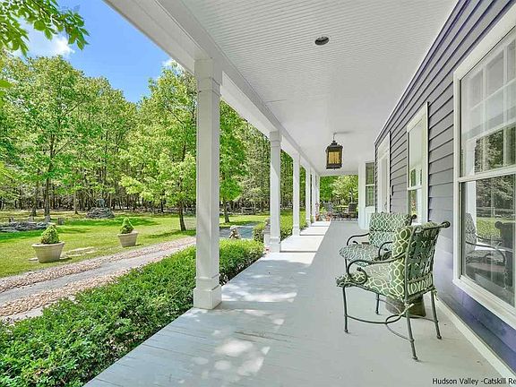 Inviting Woodstock home, close to the center of town with lots of privacy. Great for hosting parties and holiday get togethers. Since 2020 sale- interior renovations including hardwood floors throughout, custom inground gunite pool, stone patio, pergola and large garage with storage loft added; spray foam insulated, with new insulated ductwork and new high efficiency geothermal heating and cooling added, with propane backup; 20kWhr whole-house Generac generator added. 15 minutes away from historic Kingston and only 25 minutes from the cute town of Rhinebeck. Great access to local eateries.