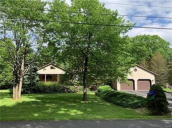 Fabulous ranch that has something for everyone! Open concept LR/DR/Kitchen areas with a floor to ceiling stone propane fireplace framed w/built-In shelving. Kitchen has a counter bar for on the go meals and a dining area for those family gatherings. Den/Exercise/Office that could be used as a 3rd Bedroom. The 4 car garage provides plenty of room for all your toys or makes a great workshop area. The LL affords the ultimate in entertainment w/a full sized bar and built-in shelves, full bath, laundry area, and large family/theater room. The home is set on a beautiful park-like lot including a sizable covered deck, concrete patio leading the sliding glass doors, and dining area. The backyard has two large sheds perfect for tool storage and the other a "She Shed" or additional anything workshop. The benefit of a whole house generator gives you all the peace of mind you will need! Conveniently located within 4 minutes of the PA Turnpike exit, white water rafting, and Pocono Raceway.