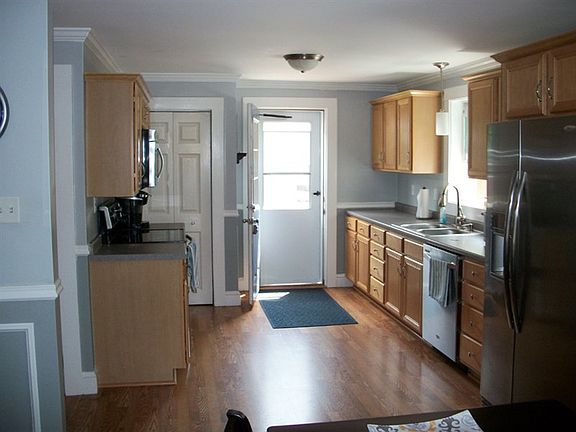 Mark your calendar and be sure to see this enchanting Cape style home before it is too late! Step up on to the inviting farmers porch as you enter this updated home. The kitchen is spacious with maple cabinets and Whirlpool stainless appliances and is open to the dining area with crown mounding and shadow boxing. The front to back living room features gleaming hardwood floors and more crown moulding. A hard to find first floor master suite has a private bath with shower and tile flooring and is ideal for those seeking single floor living. There is another full bath on the main level as well. The second level offers hardwood stairs and 2 additional bedrooms. There is a finished bonus room and plenty of unfinished space for all your storage needs in the lower level. The private rear deck overlooks the large .57 acre lot. Public water, sewer and natural gas. Welcome home! Delayed showings commence on Thursday 7/26.