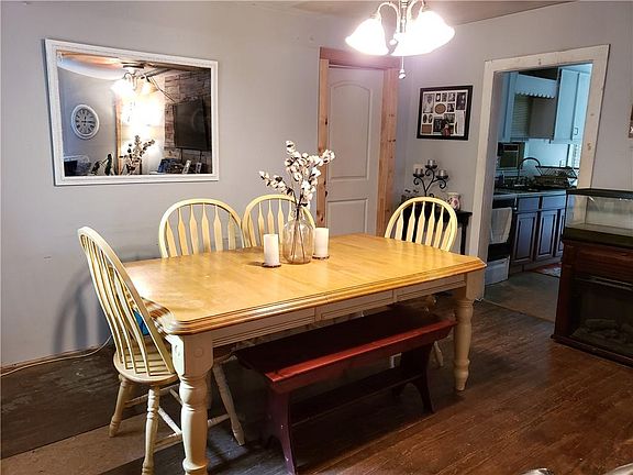 Sitting on 4.5 acres, this 2BR 1BA has so much potential! Walking onto the rocking chair front porch into the open living room and dining area with original hardwood floors. Galley kitchen with an eat-in-kitchen nook nestled in the back. The living room, and the Master bedroom both have a bay window with seating. Master bedroom also has a step up wardrobe area. Property is being SOLD AS IS.