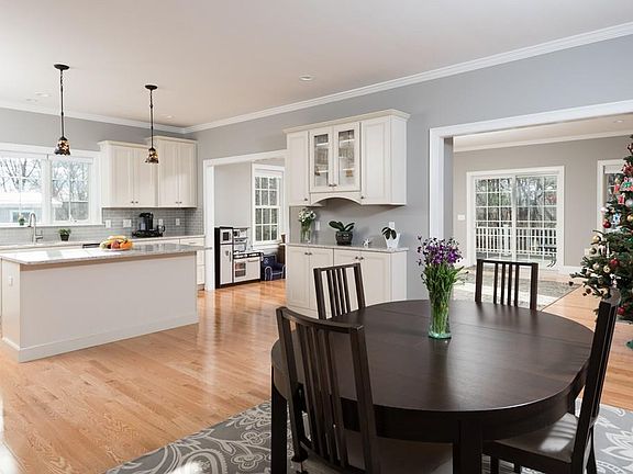 Stunning Colonial with seasonal water views in a fantastic Crow Point neighborhood with a private beach association! This 4 bed, 2.5 bath home was built in 2014 and has a great open layout, perfect for entertaining. A lovely kitchen w/ dining area opens up to a beautiful living room with built-ins, a cozy gas fireplace, and glass doors leading out to the mahogany deck. The second floor boasts a large master suite with vaulted ceilings, walk-in closet, en-suite bath, and an oversized window looking out onto the water. Three additional bedrooms, a second full bath, and laundry room round out the upstairs. Central A/C, gas heating, 2 car garage. Nothing to do but move in! This home backs up to Conservation land w/ walking trails to the Hingham Shipyard (restaurants, shops, ferry boat to Boston). This neighborhood is a hidden gem - the friendly neighborhood beach association just down the road is the perfect place to take in gorgeous sunsets over the Boston skyline!